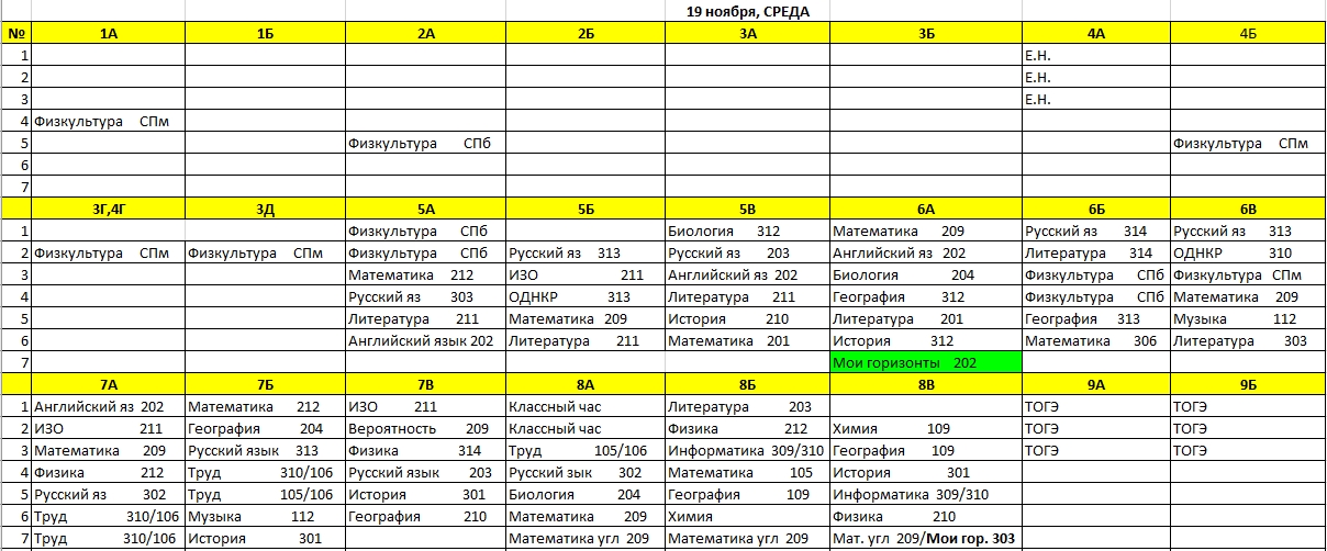 Расписание уроков